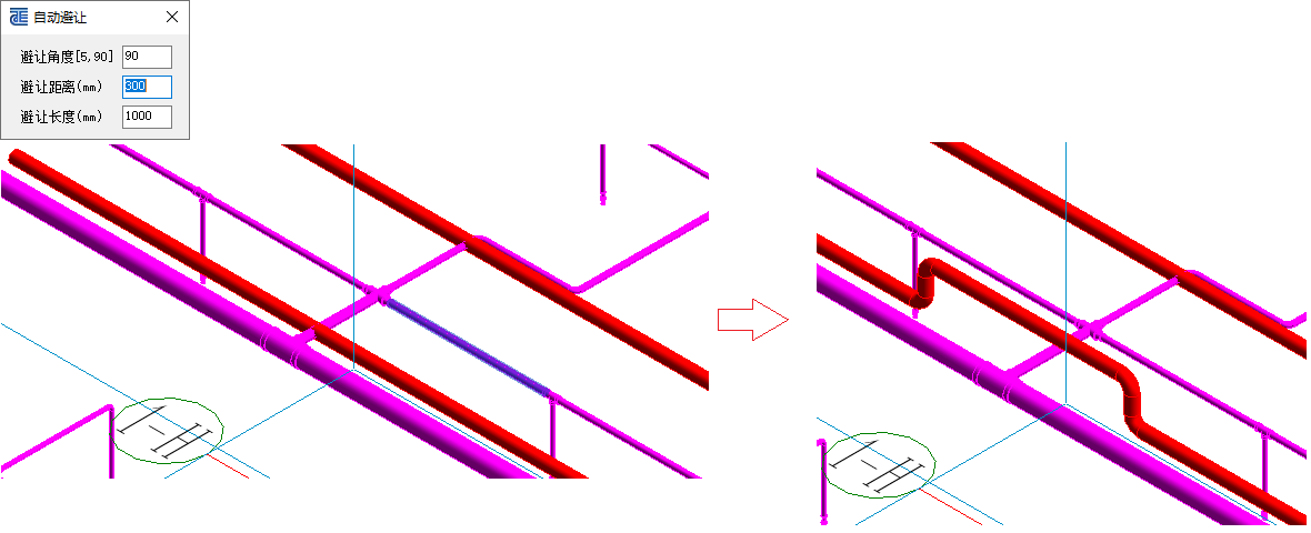 【重管检测】:快速检查模型中的重合管道并可以进行视图缩放和删除。