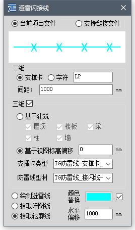 配电引出支持直连式、等长引出、引出式,实现的出线效果更丰富,导线设置也更健全,应功能思路更清晰,操作更方便。防雷线、接地线、光缆支持绘制与拾取两生成三维模型和二维表达,且可在对话框中实时更改参数信息。