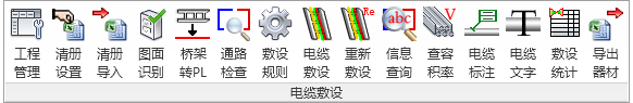 新增天正电缆敷设模块,内含工程管理、清册导入、电缆敷设、敷设统计、查容积率、导出器材、信息查询等15个命令。通过清册表导入,按照设定的敷设规则自动进行电缆敷设;敷设完后支持对电缆敷设路径查看以及对桥架的容积率查询、电缆信息查询,以便使自动敷设满足规范相关要求;最后将敷设的电缆和器材通过导出器材汇总到EXCEL导出到本地。