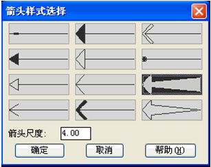 【箭头绘制】:绘制箭头和引线,或进行坡度标注等。提供了九种样式。